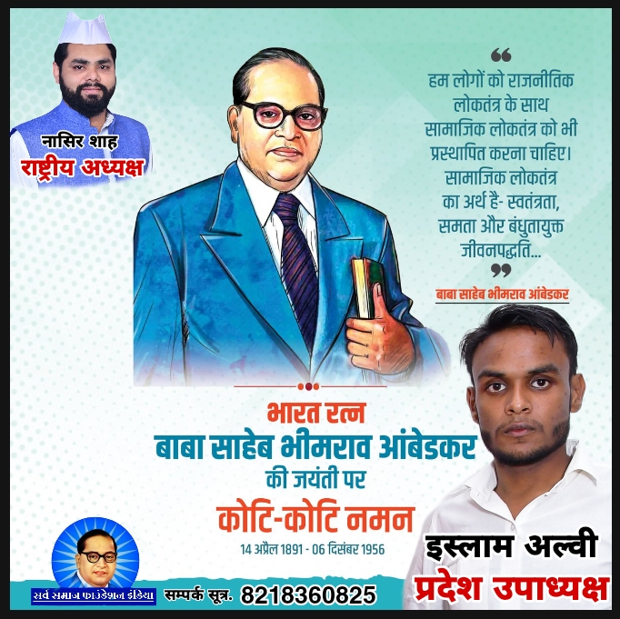 अलीगढ़। एम राष्ट्रीय शाह समाज फाउंडेशन अलीगढ़ एवं सर्व समाज फाउंडेशन इन्डिया अलीगढ़ की ओर से एक सभा आयोजित की गई। जिस में सर्व समाज फाउंडेशन इन्डिया अलीगढ़ के उपाध्यक्ष एवं एम राष्ट्रीय शाह समाज फाउंडेशन इन्डिया अलीगढ़ जिला अध्यक्ष इस्लाम अल्वी ने पंजाब टाइमज़ न्यूज़ से बात चीत करते हु्ए कहा कि डॉ बी. आर. अंबेडकर ने इतनी असमानताओं का सामना करने के बाद सामाजिक सुधार का मोर्चा उठाया। अंबेडकर जी ने ऑल इंडिया क्लासेज एसोसिएशन का संगठन किया। सामाजिक सुधार को लेकर वह बहुत प्रयत्नशील थे। ब्राह्मणों द्वारा छुआछूत की प्रथा को मानना, मंदिरों में प्रवेश ना करने देना, दलितों से भेदभाव, शिक्षकों द्वारा भेदभाव आदि सामाजिक सुधार करने का प्रयत्न किया। परंतु विदेशी शासन काल होने कारण यह ज्यादा सफल नहीं हो पाया। विदेशी शासकों को यह डर था कि यदि यह लोग एक हो जाएंगे तो परंपरावादी और रूढ़िवादी वर्ग उनका विरोधी हो जाएगा।