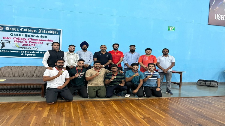 जालंधर , 10 अक्तूबर । गुरु नानक देव विश्वविद्यालय, क्षेत्रीय परिसर, जालंधर की एक टीम जिसमें सक्षम परमार, कार्तिक, सक्षम शर्मा, केशव, रूपल और शिवांश शामिल थे, ने इंटर कॉलेज स्पोर्ट्स में टीम मैनेजर जसजीत सिंह के मार्गदर्शन में बैडमिंटन में कांस्य पदक अर्जित किया है। टूर्नामेंट का आयोजन गुरु नानक देव यूनिवर्सिटी, अमृतसर द्वारा किया गया। यह टूर्नामेंट 9 अक्टूबर, 2024 को दोआबा कॉलेज, जालंधर में आयोजित किया गया था।