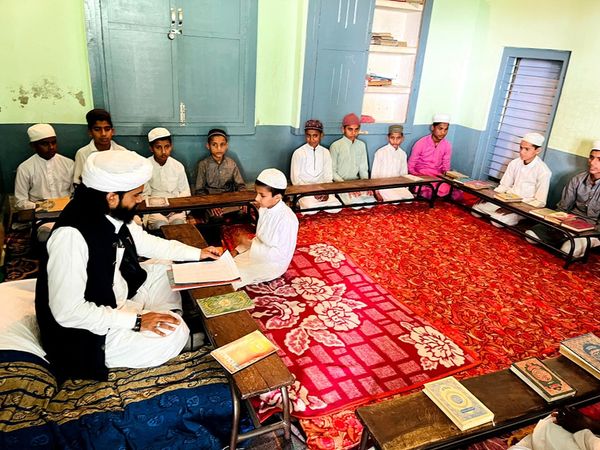 मालेरकोटला। गाँव अकबरपुर छन्ना में जनाब हाफिज़ मुहम्मद वली साहिब के मदरसे के छात्रों की शिक्षा का निरीक्षण करते हुए मुफ्ती आज़म पंजाब के सपुत्र मोैलाना मुहम्मद यूसुफ कासमी,महासचिव जमीयत उलमा ए हिंद पंजाब,साथ हैं मदरसा ज़ीनत उल उलूम के अध्यापक हाफिज़ मुहम्मह इकराम खलीली।