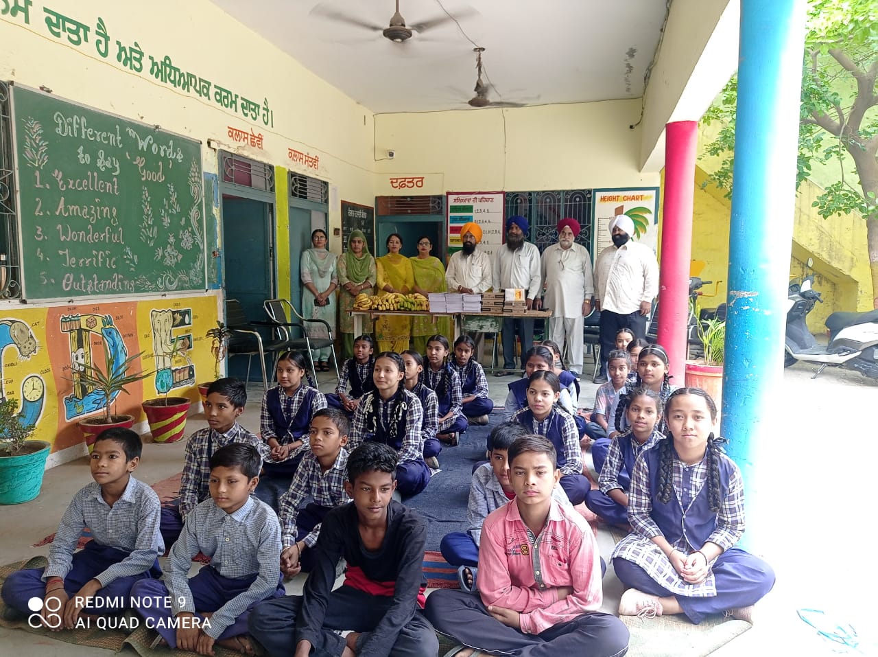 समाज सेवी संस्था नेकी की दुकान करतारपुर द्वारा बांटे गये छात्रों को स्टेशनरी व फल