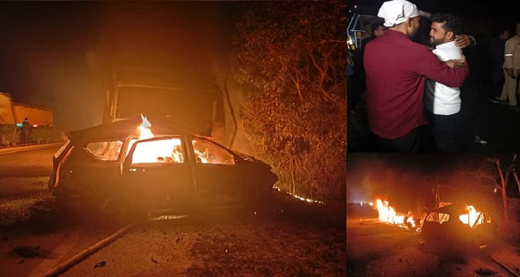 टक्कर इतनी जोरदार थी कि कार पांच फुट ऊंची दीवार वाले डिवाइडर के ऊपर से होते हुए दुसरी दिशा से आ रहे डंपर में जा घुसी। प्राथमिक जांच के अनुसार सेंट्रल लॉक की खराबी के कारण, उसमें बैठे लोग कार से निकलने में असमर्थ रहे। आग ने तेजी से वाहन को अपनी चपेट में ले लिया, जिससे बचने का कोई मौका नहीं बचा। शव पहचान से परे जले हुए थे।