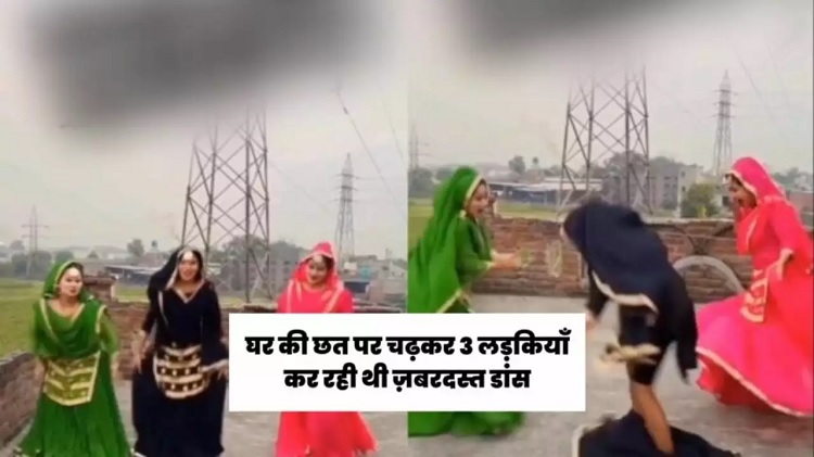 छत पर डांस करती इन दोस्तों का वीडियो खूब वायरल हो रहा है। इसमें तीन दोस्तों को डांस करते देखा गया। तीनों ही दोस्तों ने अलग-अलग तरह का घाघरा पहना था। कैमरे को सामने रखकर वो डांस रिकॉर्ड कर रही थीं। लेकिन तभी उनमें से एक का घाघरा खुल गया। लड़की ने तुरंत ही अपना गिरा हुआ घाघरा उठाया और कैमरे से दूर भाग गई। लेकिन तब तक तो सारा वाक्या कैद हो गया था।