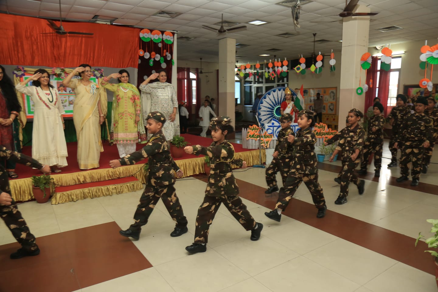प्राइमरी विंग में विद्यार्थियों ने ‘तारीख गवाह है’ नाटिका के माध्यम से स्वतंत्रता के 200 साल के संघर्ष की गाथा प्रस्तुत की गई। विद्यार्थियों ने देशभक्ति का गीत प्रस्तुत किया व भंगड़ा पेश किया। प्री प्राइमरी विंग में इस अवसर पर विद्यार्थियों द्वारा देशभक्ति के गीतों पर नृत्य प्रस्तुत किया गया व परेड प्रस्तुत की गई।