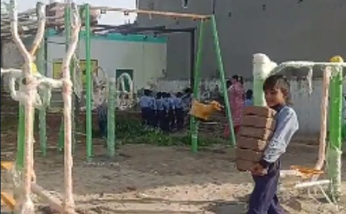 वीडियो हुआ वायरल- सुबह प्रार्थना के दौरान स्कूल में ईंटें उठाते नजर आए मासूम बच्चे